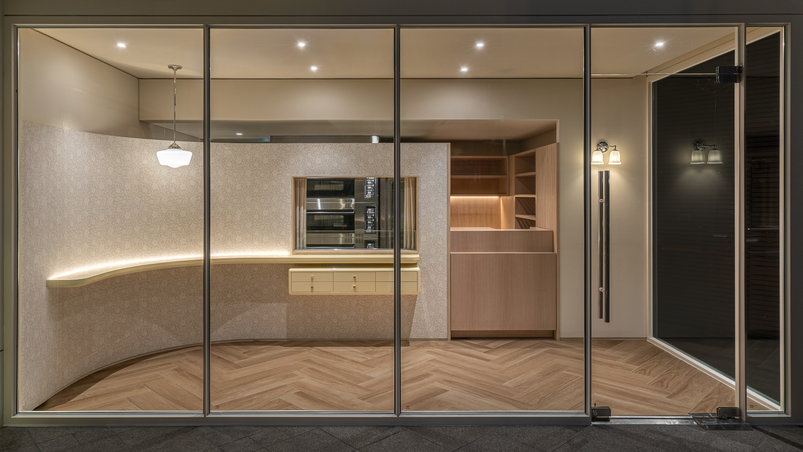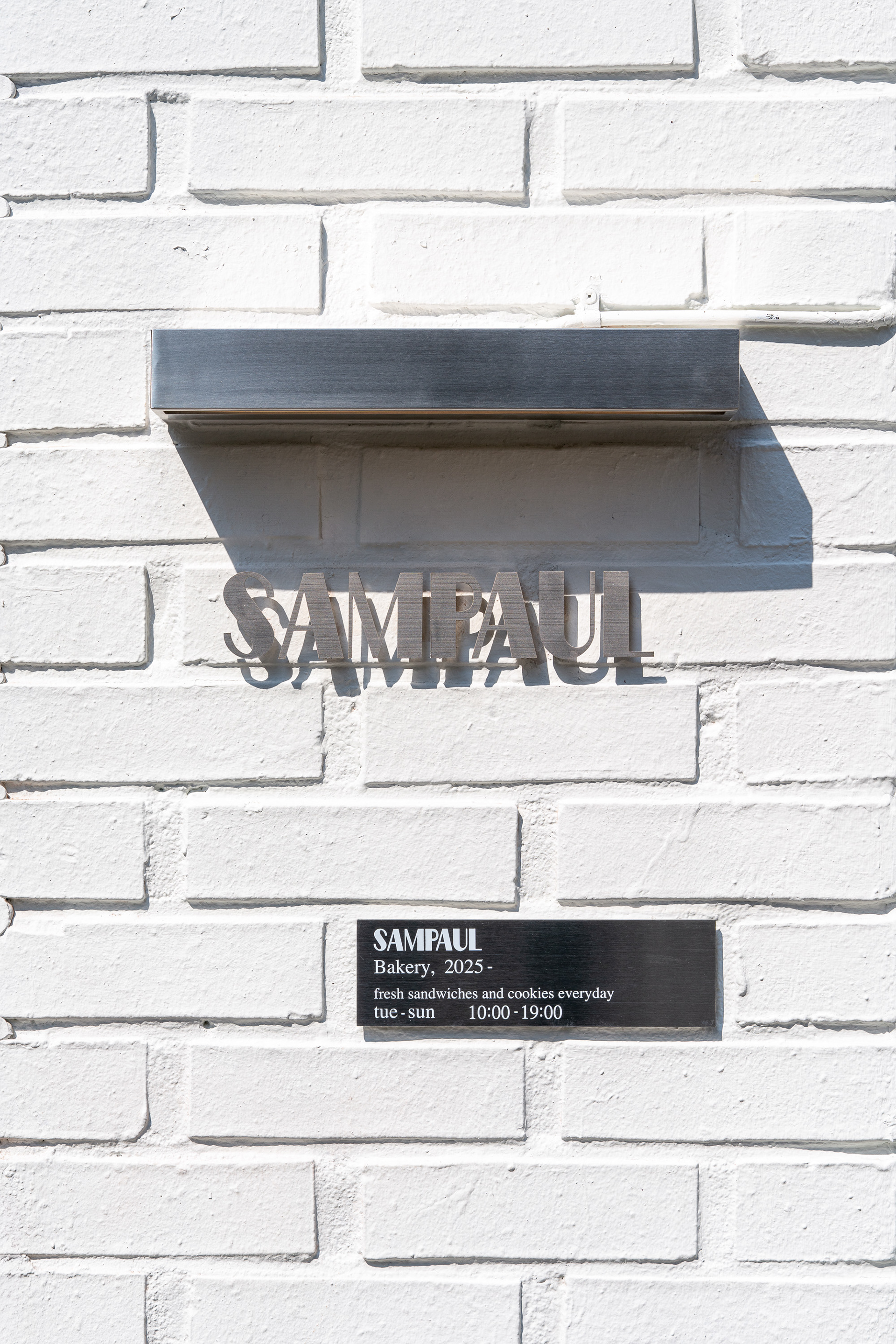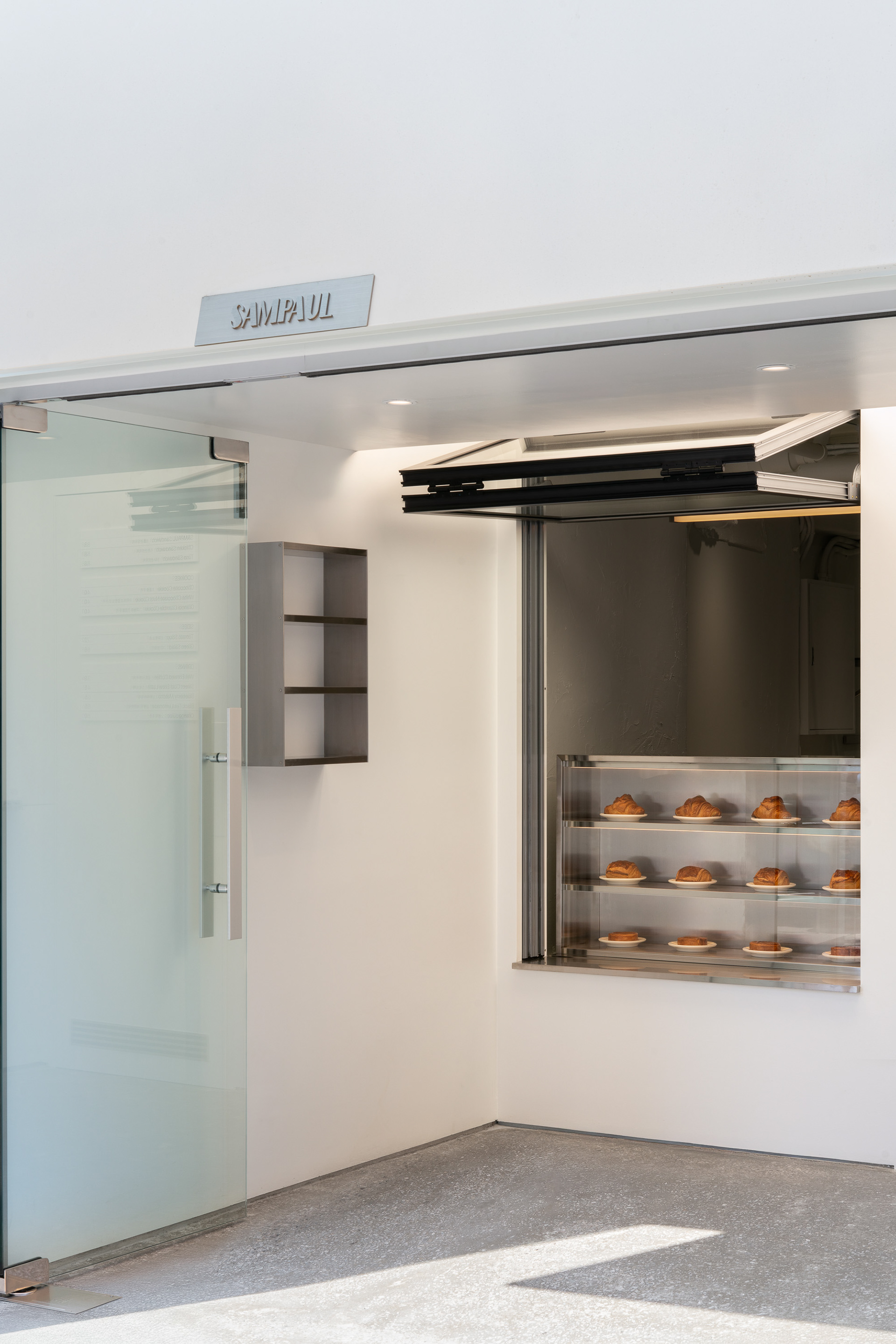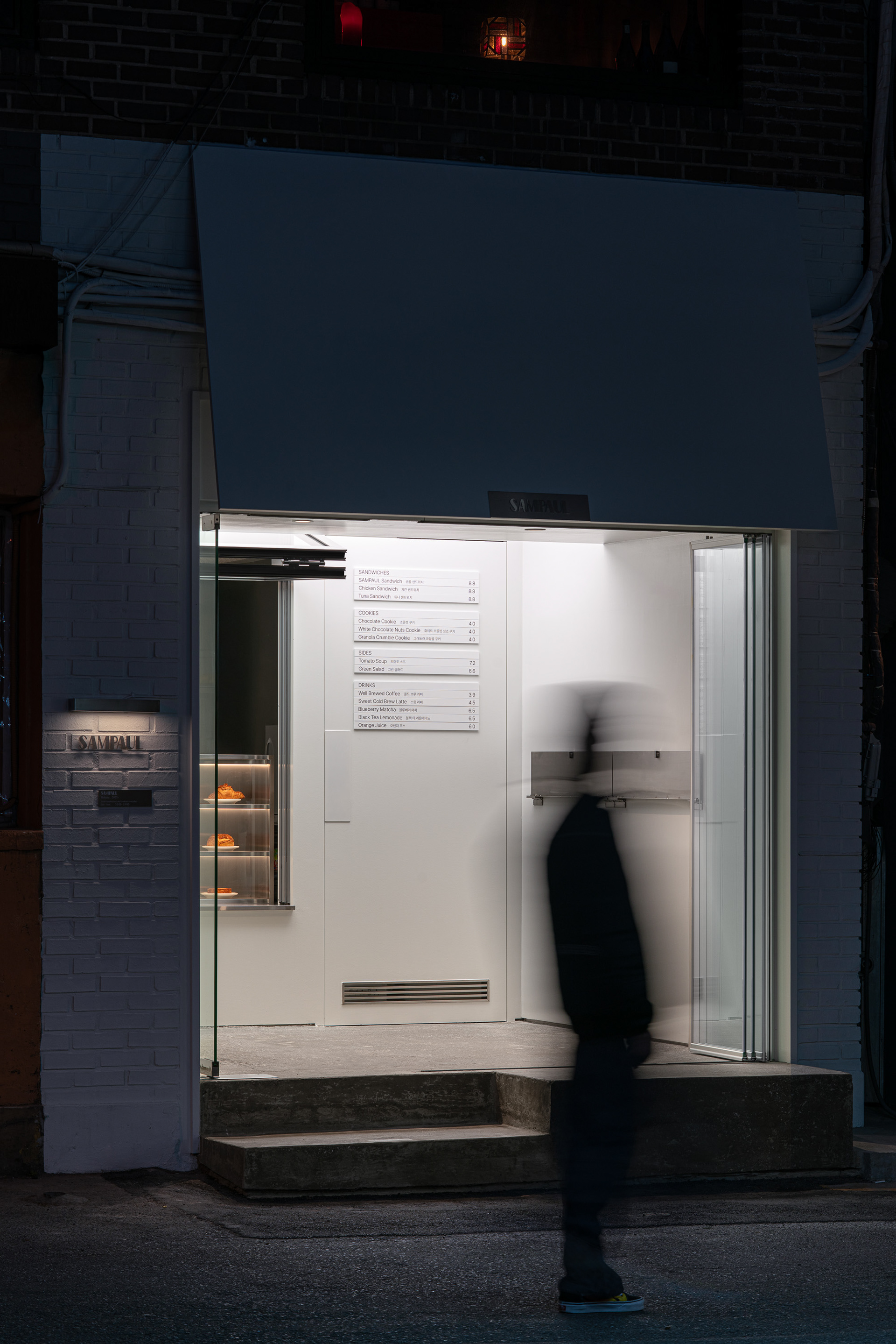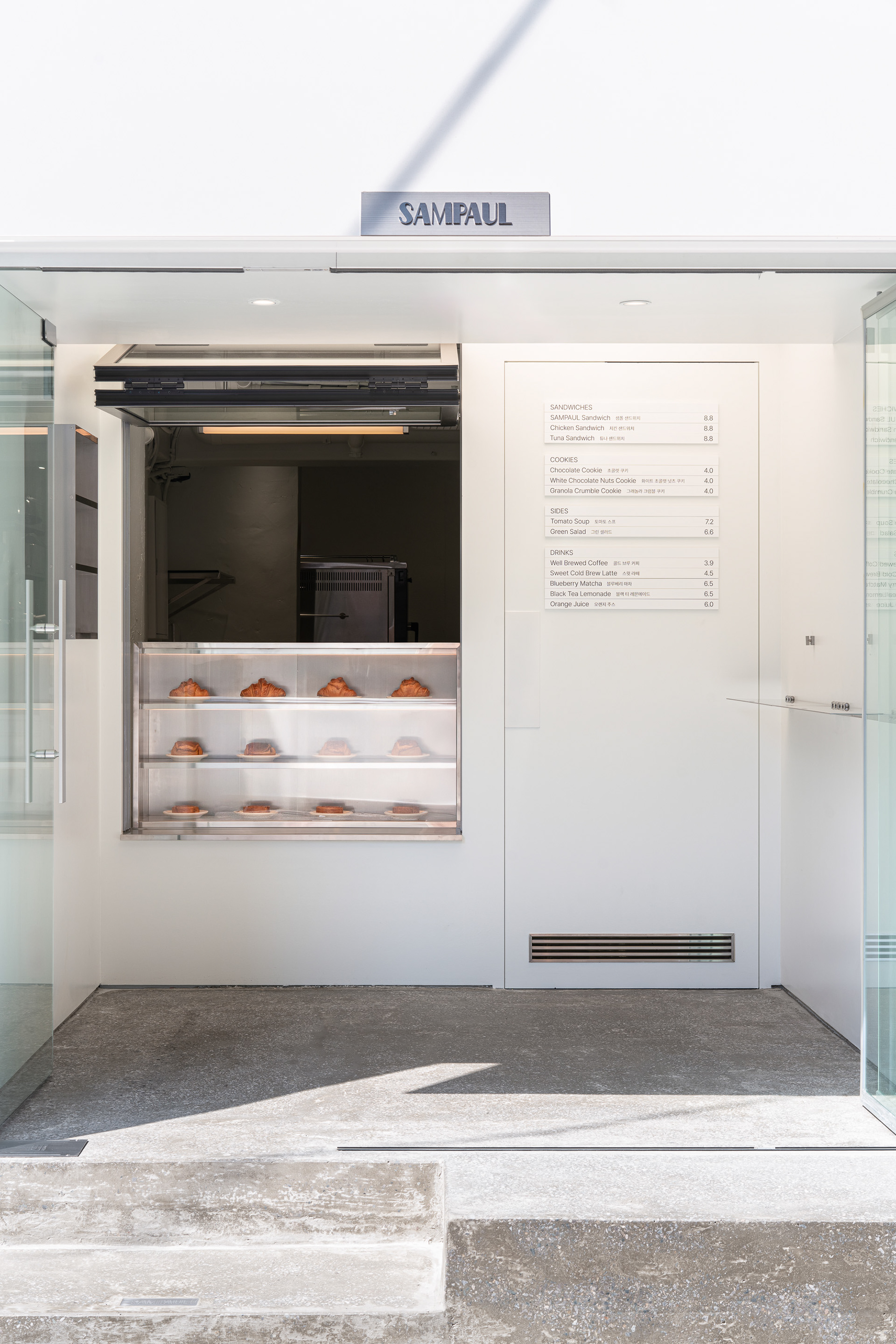 폴딩도어와 폴드업 창은 이 공간의 확장성을 만드는 장치다. 문을 열면 내부와 외부의 경계가 느슨해지고, 가게는 하나의 실내라기보다 골목의 흐름에 자연스럽게 스며드는 장면처럼 바뀐다. 샘폴은 이 작은 흰 틈 안에서, 사람들이 잠시 머물다 다시 골목으로 번져 나가는 공간이기를 바랐다.