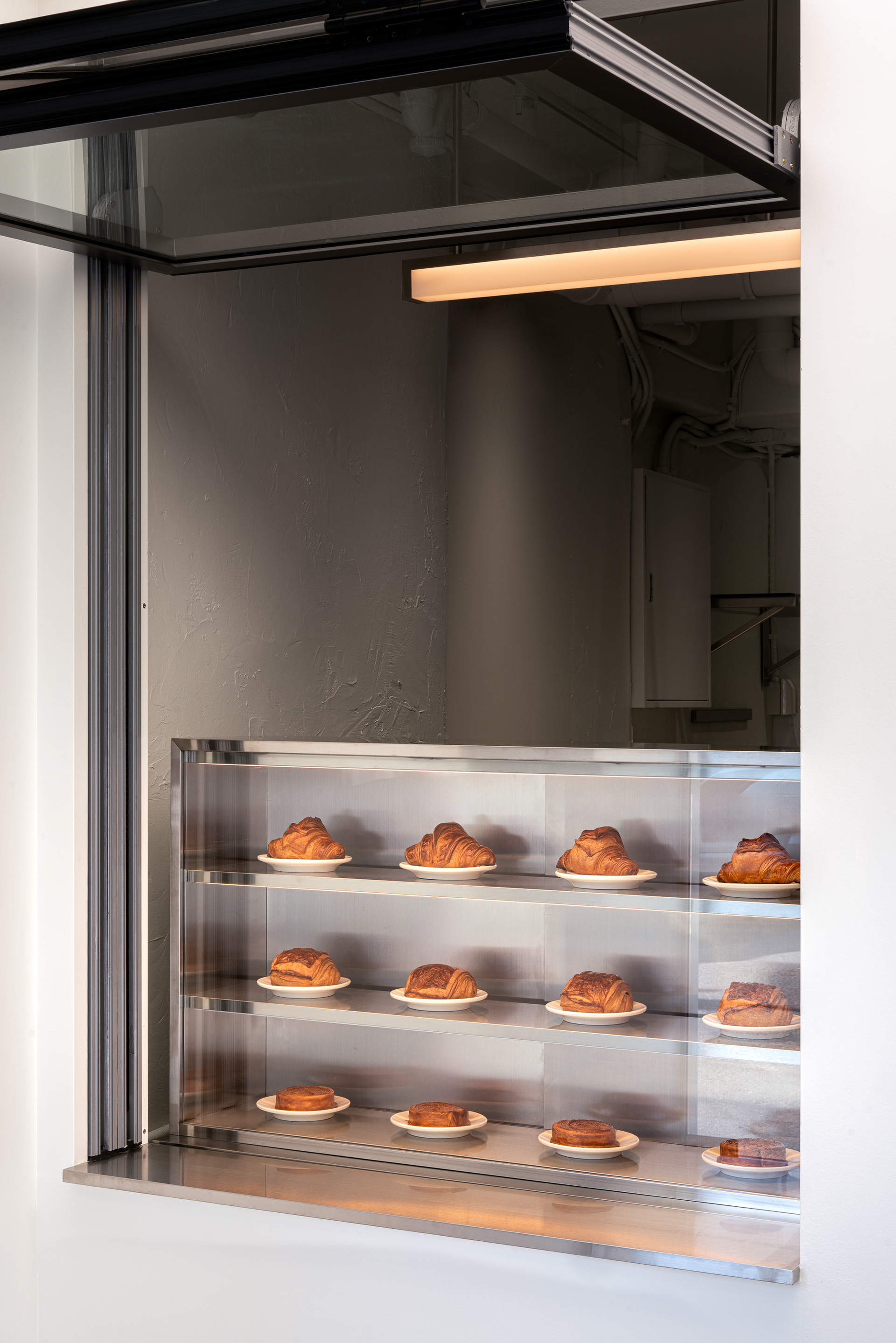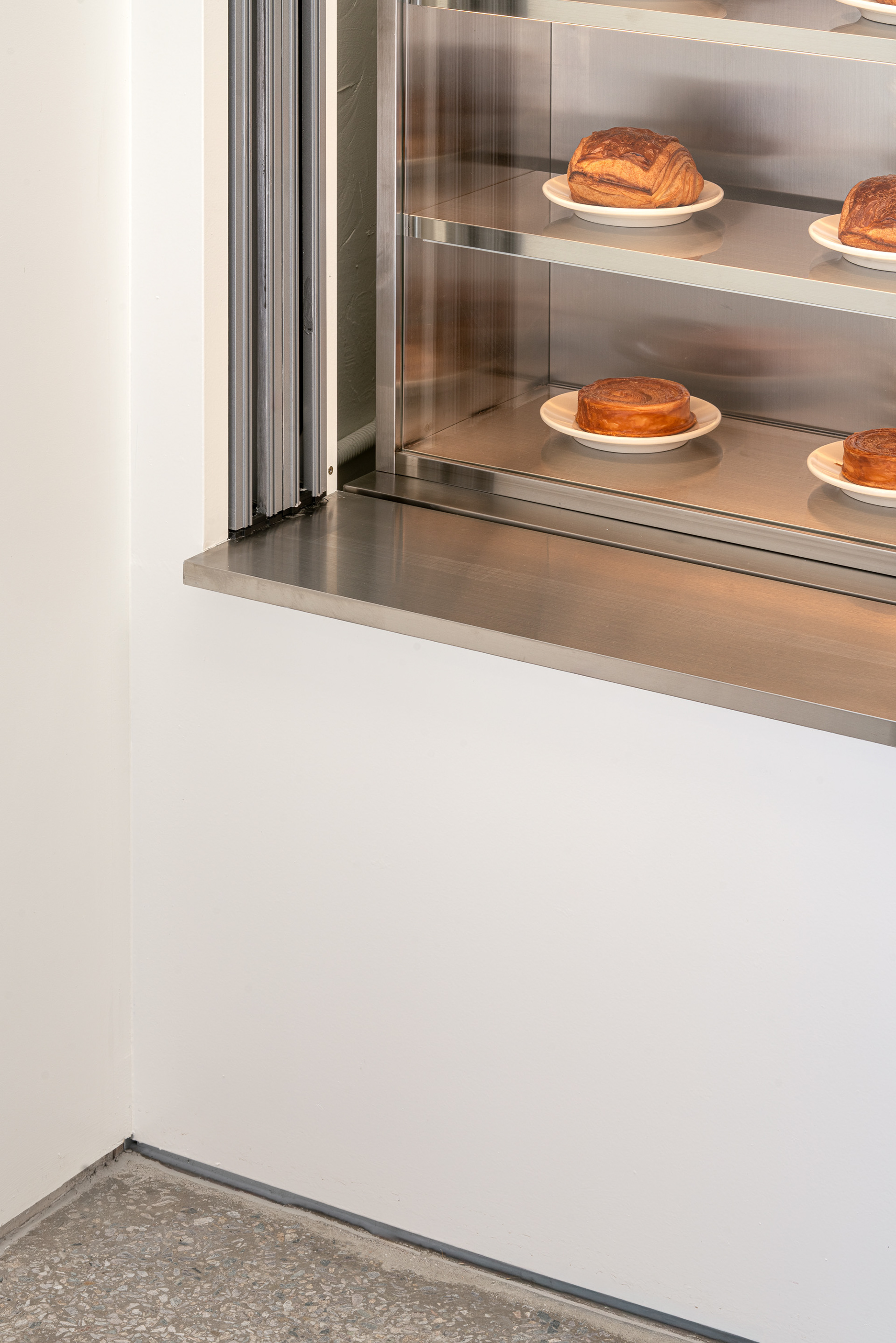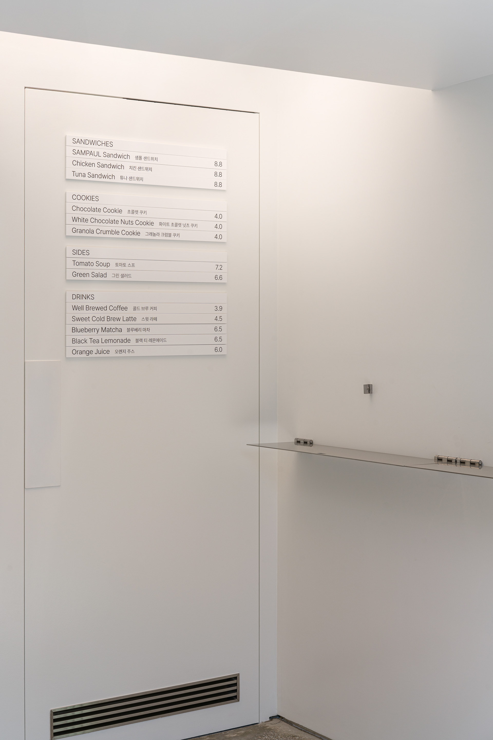 작은 공간인 만큼 장식적인 요소는 덜어내고, 백색과 금속을 중심으로 간결하게 정리했다. 샌드위치처럼 가볍고 명료한 인상이 공간에도 이어지기를 의도했다. 복잡한 설명보다 재료의 선명함과 밀도로 기억되는 쪽에 가깝다.
